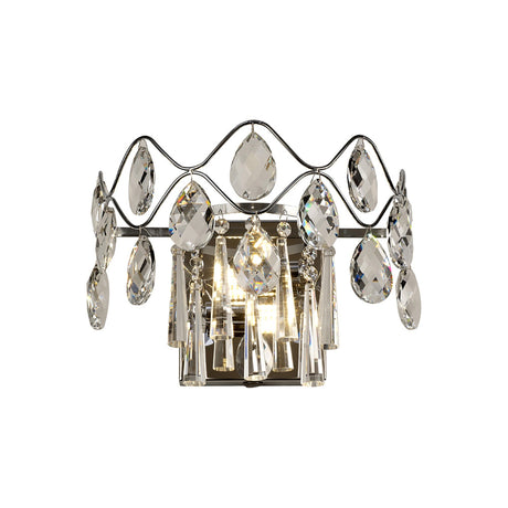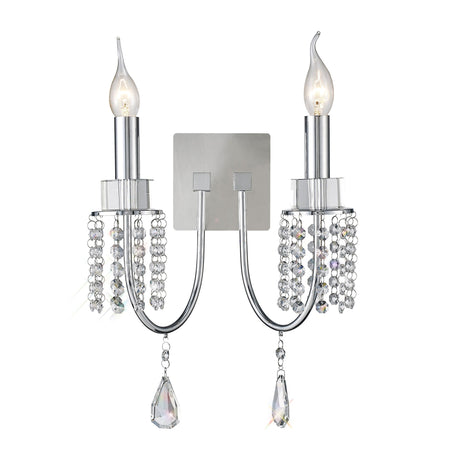 Charis 2 Light Glass & Crystal Wall Light With Switch - Chrome