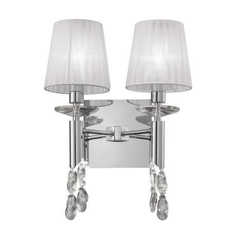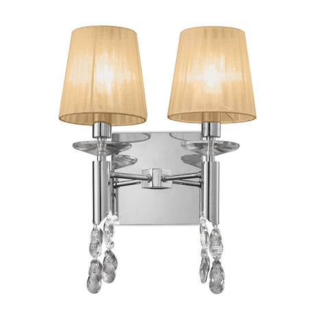 Tiffany 2 Light Crystal Wall Light With Switch - Chrome With Cream Shade