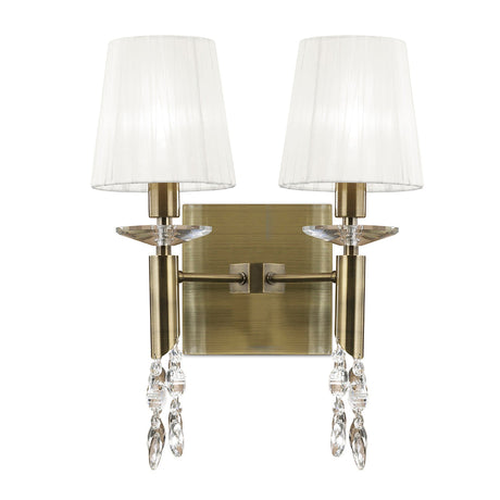 Tiffany 2 Light Crystal Wall Light With Switch - Brass With White Shade
