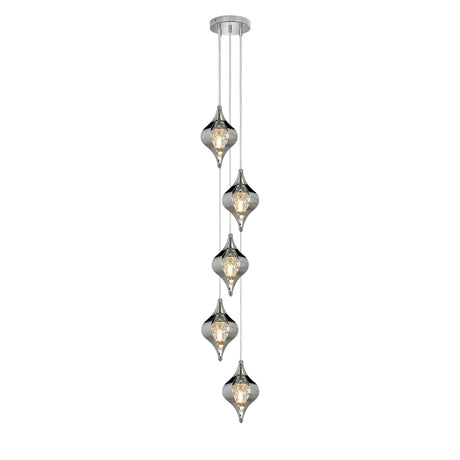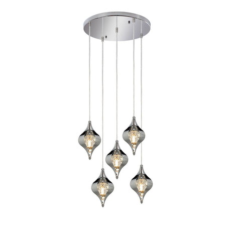 Amano Small 5 Light Crystal Cluster Pendant Light - Polished Chrome