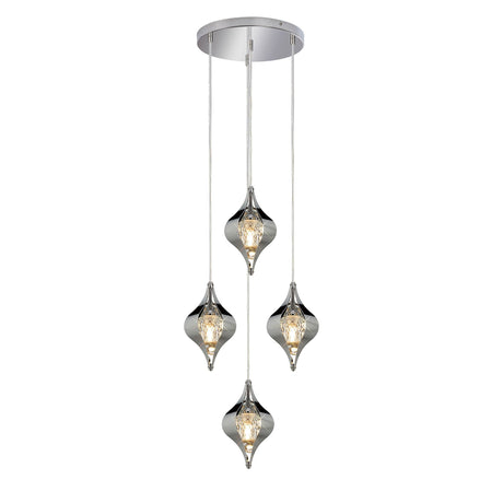 Amano 4 Light Crystal Cluster Pendant Light - Polished Chrome