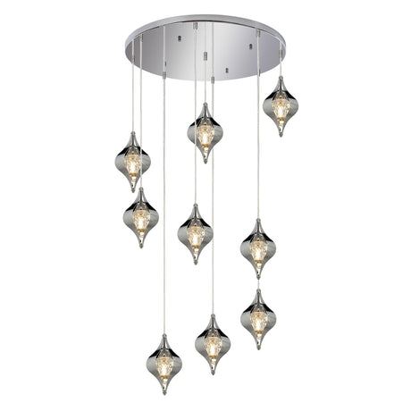 Amano 9 Light Crystal Cluster Pendant Light - Polished Chrome