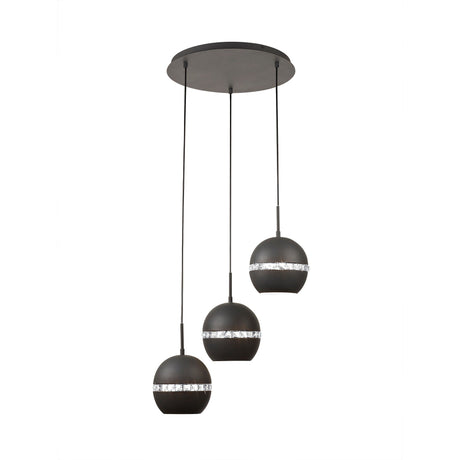 Andrea 3 Light Round Crystal Cluster Pendant Light - Graphite