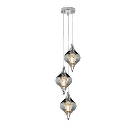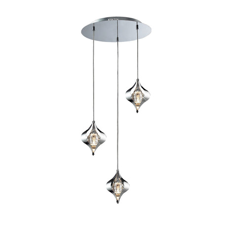 Amano Small 3 Light Crystal Cluster Pendant Light - Polished Chrome