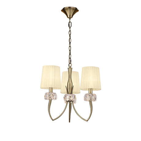 Loewe 50cm 3 Light Chandelier - Antique Brass With Cream Shades