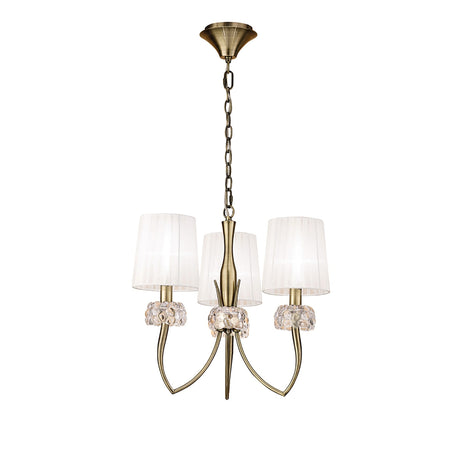 Loewe 50cm 3 Light Chandelier - Antique Brass With White Shades