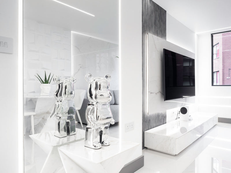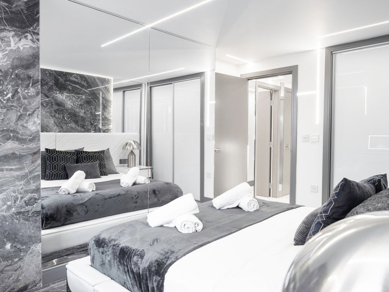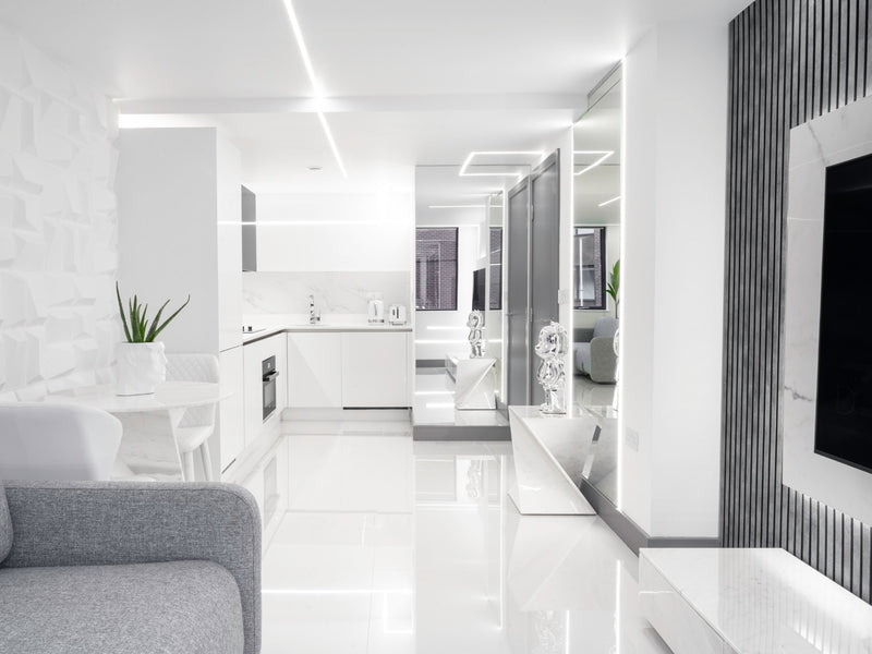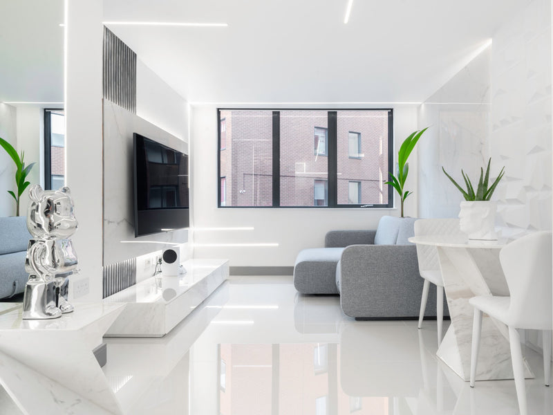 A sleek one-bedroom apartment that sets a new benchmark for urban luxury. We supplied and installed over 150 metres of high-CRI LED strip lighting, invisibly integrated into ceilings, walls and kitchen areas. The result is a calm, glare-free glow that defines spaces without a single downlight or pendant... pure, uninterrupted ambience that showcases Urbanis’ Spanish and Italian inspired finishes to perfection.