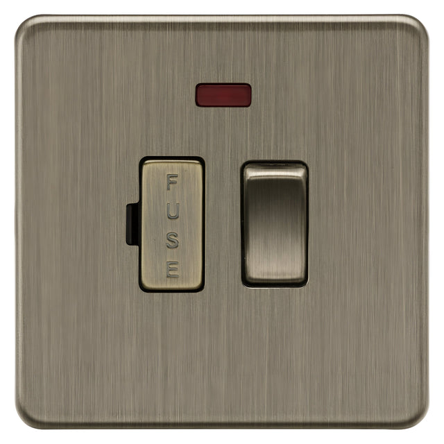 13A Switched Fused Spur with Neon - Antique Brass (Screwless)