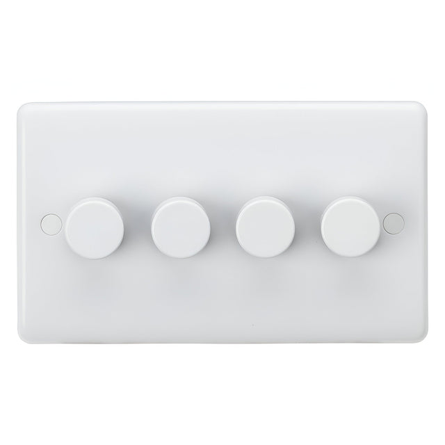 4 Gang 5-400W (5-150W LED) 2-Way Intelligent Dimmer - White (Round Edge)