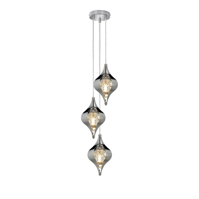 Amano Small 3 Light Crystal Cluster Pendant Light - Polished Chrome