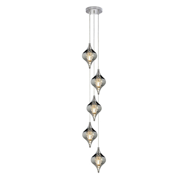 Amano Small 5 Light Crystal Cluster Pendant Light - Polished Chrome