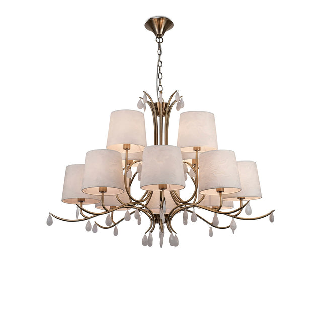 Andrea 100cm 12 Light Chandelier - Antique Brass With White Shades
