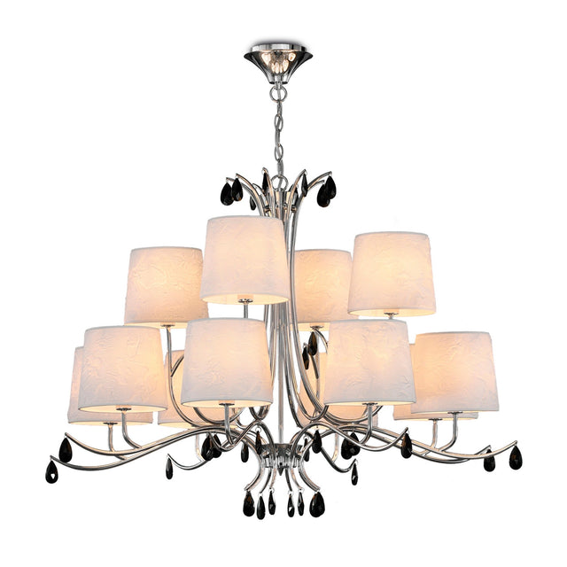 Andrea 100cm 12 Light Chandelier - Polished Chrome With White Shades