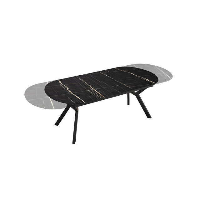 Antea 8-10 Seater Wood & Metal Extendable Dining Table – Black Marble