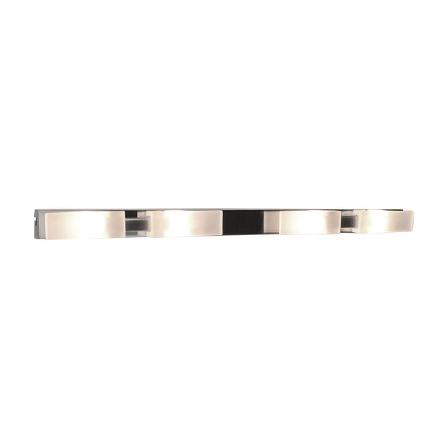 Arco 4 Light Flush Ceiling Light Satin Nickel offers the same disciplined modern aesthetic as the larger six-light model but with a more compact scale ideal for smaller or narrower rooms. The design features a straight metal bar in a satin nickel finish, supporting four cylindrical frosted diffusers that are spaced evenly to create a consistent visual rhythm. The satin nickel surface gives the fixture a calm, understated sheen, allowing the diffusers to take prominence while still retaining a cohesive architectural quality.