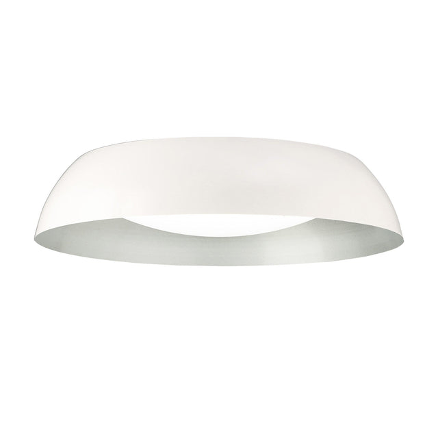 Argenta LED Flush Ceiling Light 30W 3000K – Matt White presents a refined circular form shaped by gentle curvature and a beautifully softened silhouette. The matt white exterior produces a calm, almost ceramic-like surface that complements the fixture’s smooth transitions and continuous contours. Its broad, rounded body creates an understated architectural presence that sits close to the ceiling while maintaining a distinct sculptural identity. The recessed lower aperture reveals a contrasting silver interior, which introduces visual depth and subtle luminosity even when unlit. This pairing of finishes enhances the interplay between light and surface, allowing the fixture to feel both minimal and expressive.