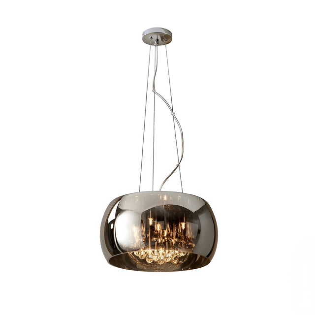 Combining a sculptural silhouette with luxe materials, the Argos 5 Light Pendant brings refined drama to any room. The smoked brown glass shade encases a series of dazzling crystal drops that sparkle from within, creating an interplay of light and texture. Its polished chrome hardware adds a modern contrast to the warm tones of the glass, while the open design allows light to disperse evenly across the space.