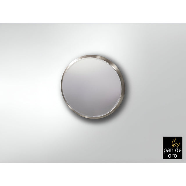 Aries Round Wall Mirror Silver offers a compact, polished aesthetic in a clean circular form. The hand-applied silver leaf frame surrounds a beveled glass plate, combining light-catching material with sculptural balance.