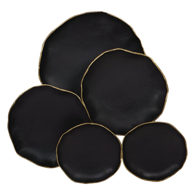The Arlow Matt Black Wall Art brings a dynamic and modern aesthetic to your space with its freeform, round fluid discs outlined in subtle gold edges. Handcrafted from cast aluminium, the matt black finish offers a striking contrast to the gold accents, creating a sophisticated and contemporary look. The organic shapes add a sense of movement and texture, making this piece a captivating focal point. This item can be hung in landscape or portrait orientation and is also available in a 7-disc version. This item must be installed by a professional using the appropriate wall fittings.