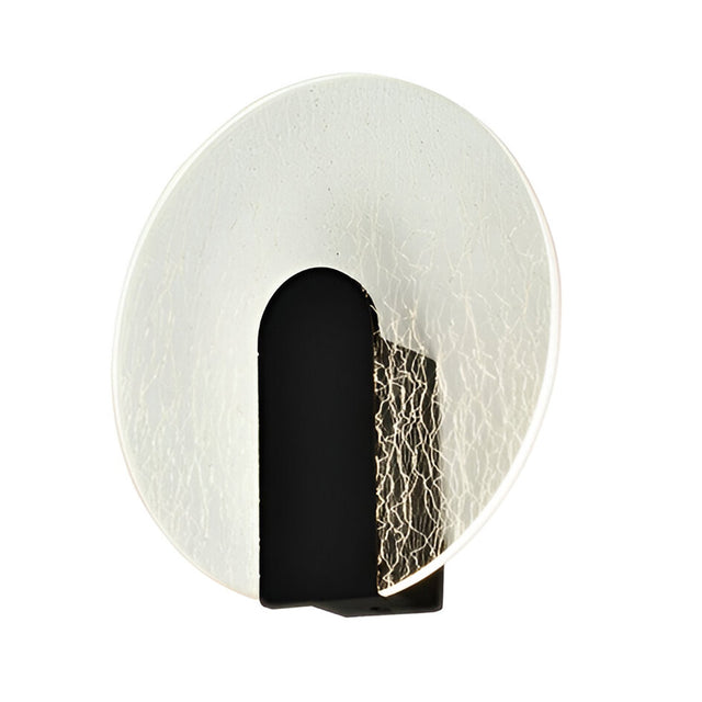 The Auris round LED wall light brings together clarity, contrast, and artistic detail in a compact modern form. Made of metal with a matte black finish, this piece features a clear round acrylic diffuser that softens the light and disperses it with calm, ambient tone. At the center of its appeal is a gold microprinted stripe texture that adds visual interest without dominating the design.