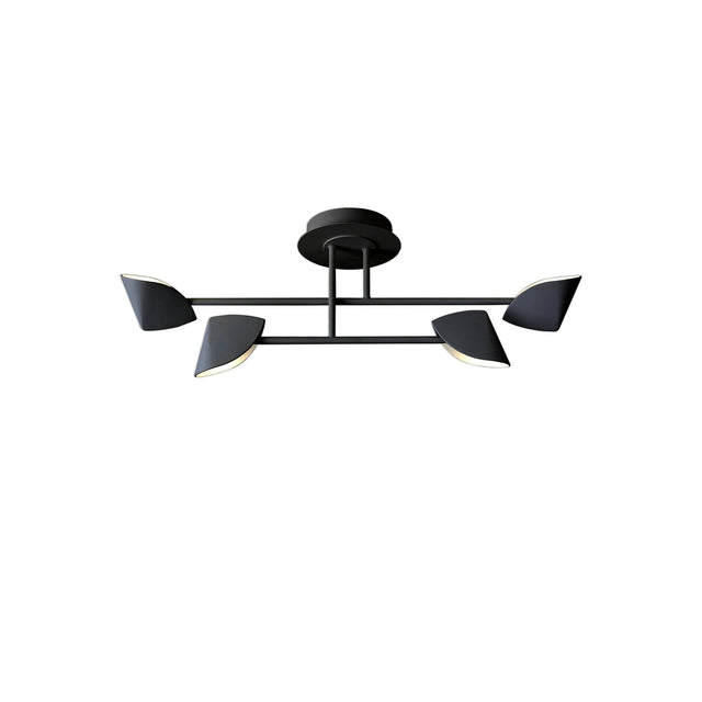 The Capuccina Small LED Semi-Flush Ceiling Light 30W 3000K in black presents the same sculptural folded-shade concept but with a dramatically different visual impact. The deep black finish sharpens every contour of the angled metal planes, enhancing the shadows and emphasising the origami-inspired structure of each cone. Across the adjustable bars, the shades can be positioned in a scattered arrangement, giving the entire composition an expressive yet carefully balanced appearance.