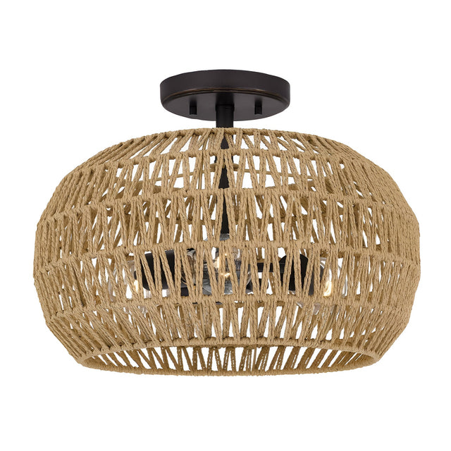 Casablanca 3 Light Semi Flush in Light Brown introduces warmth and tactile energy to compact ceilings through its layered rattan-effect design. The open globe frame is formed from interwoven strands in a sandy brown tone, supported by a dark central base that anchors the shape visually. Designed to hug the ceiling, this semi flush piece offers structure and natural presence without overwhelming lower rooms. Ideal for bedrooms, living rooms, or transitional areas, Casablanca casts patterned shadows and softly diffused glow across the space. Its light brown finish works with both pale and dark furnishings, offering a flexible styling base that suits coastal, bohemian, and transitional interiors alike. The woven form invites a relaxed, artisanal feel, while the circular symmetry brings visual harmony and calm. Whether you’re layering lighting in a neutral scheme or looking to introduce softness to hard surfaces, Casablanca delivers ambient impact with crafted charm.