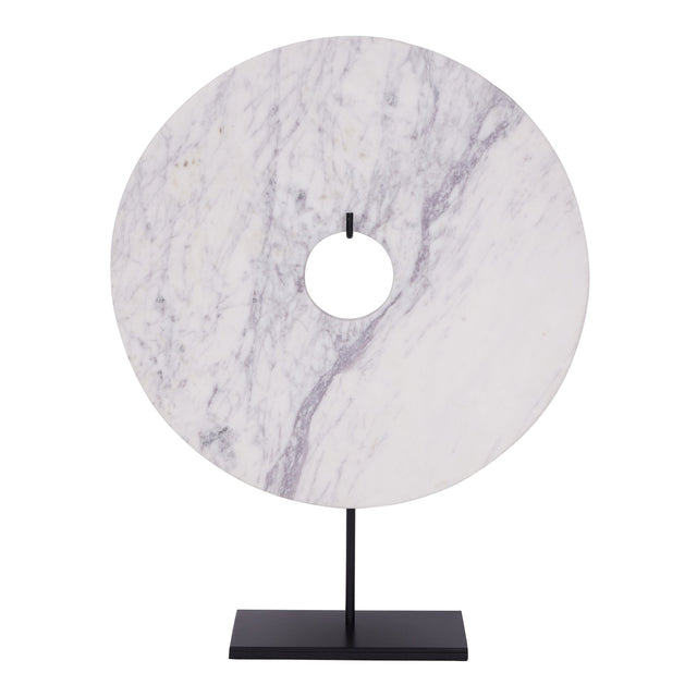 Enhance your home décor with the white marble disc figurine, a piece that embodies timeless elegance. Featuring a smooth white marble disc mounted on a sleek black powder-coated stainless steel stand, this ornament offers a striking contrast that enhances its visual appeal. Perfect for styling on shelves, mantels, or tabletops, it adds architectural interest and sophistication to any room. Crafted from premium materials, this figurine not only serves as a beautiful decorative element but also promises durability and longevity, making it a cherished addition to your interior collection.