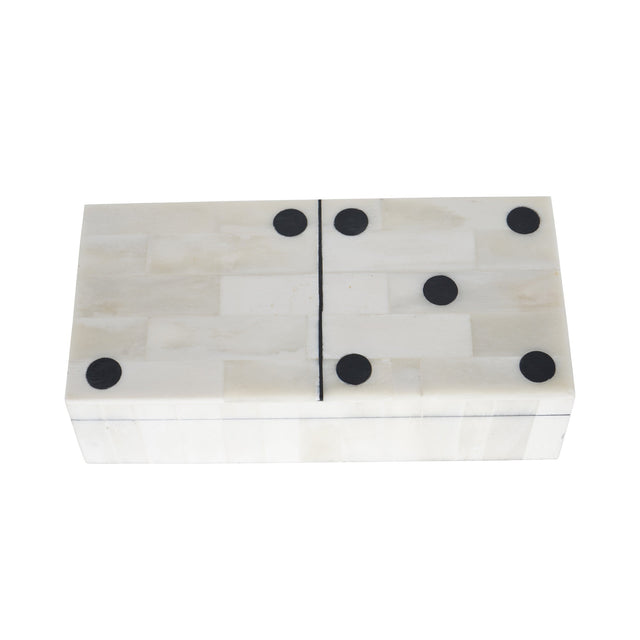The Chollerford Bone Inlay Dominoes Box is an elegant addition to your interiors space. Easily giftable, this bone inlay Dominoes box is both functional and stylish. The presentation box is reminiscent of a large domino playing piece, with off-white bone inlay and black detailing. Inside the box is a soft touch velvet lining, housing 27 tactile resin playing pieces.