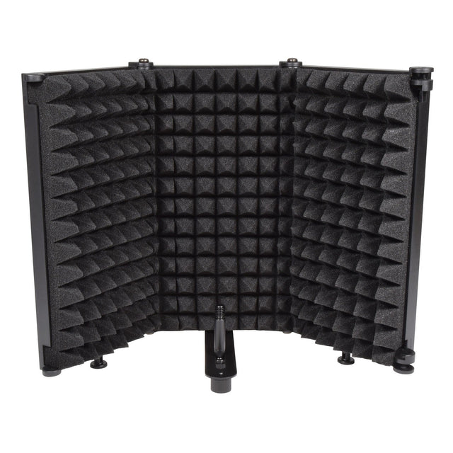 The Citronic 3-Section Foldable Microphone Isolation Screen offers professional-grade sound control in a compact, portable design. Its three hinged panels feature high-density acoustic foam that absorbs unwanted reflections, ensuring clear and accurate vocal recordings. The thermoplastic frame is both lightweight and durable, making it ideal for transport between sessions. With its smaller size, this version is perfect for tight spaces, desktop recording setups, or mobile studios. The screen mounts easily to any standard 3/8" thread microphone stand and includes a small microphone mounting post for additional versatility. Designed for podcasters, home recording artists, and project studios, it reduces background noise and improves vocal focus without the need for complex room treatment. Its foldable panels allow for easy storage and rapid setup, making it a go-to tool for on-the-go recording. Whether capturing vocals, narration, or instrumental detail, the Citronic 3-Section Isolation Screen delivers reliable acoustic performance in a portable form factor.