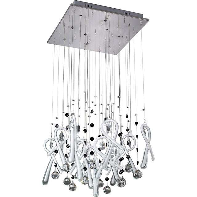 Class 10 Light Square Glass & Crystal Cluster Pendant Light - Chrome & White