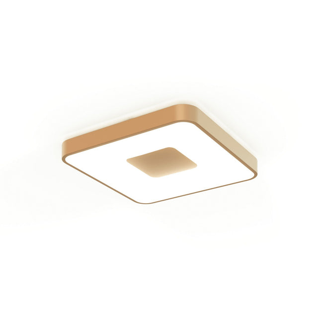 The Coin Medium Square CCT LED Flush Ceiling Light With Remote Control in gold presents a warm, contemporary interpretation of layered square geometry. The outer square frame is finished in a soft gold tone that brings subtle sheen and warmth to the structured outline. Gently rounded corners temper the rigidity of the square, giving the form a refined, balanced presence.