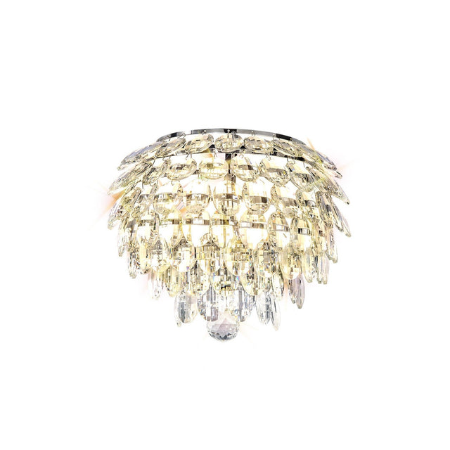 The polished chrome finish introduces a crisp backdrop that heightens the clarity of the crystal arrangement. Its cool reflective surface complements the brightness of the crystal composition while adding a clean architectural definition.