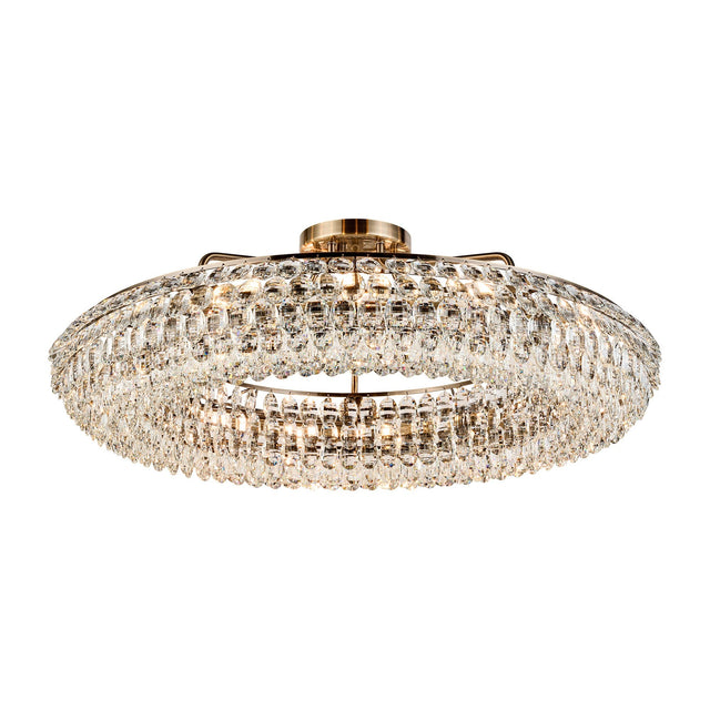 Coniston 4 Light Ring Crystal Semi-Flush Ceiling Light - Antique Brass