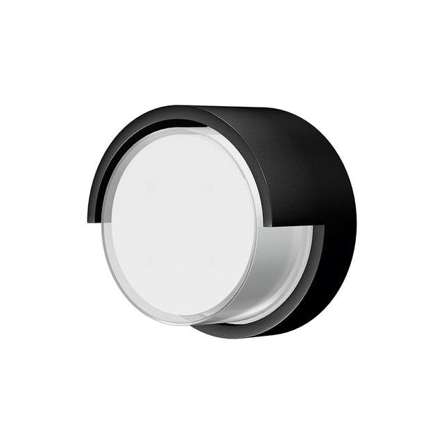 The Creek Round Outdoor CCT LED Wall Light in black combines a minimalist circular form with modern adaptability. Its bold black finish brings a refined edge, making it a versatile addition to architectural exteriors ranging from modern homes to professional buildings.