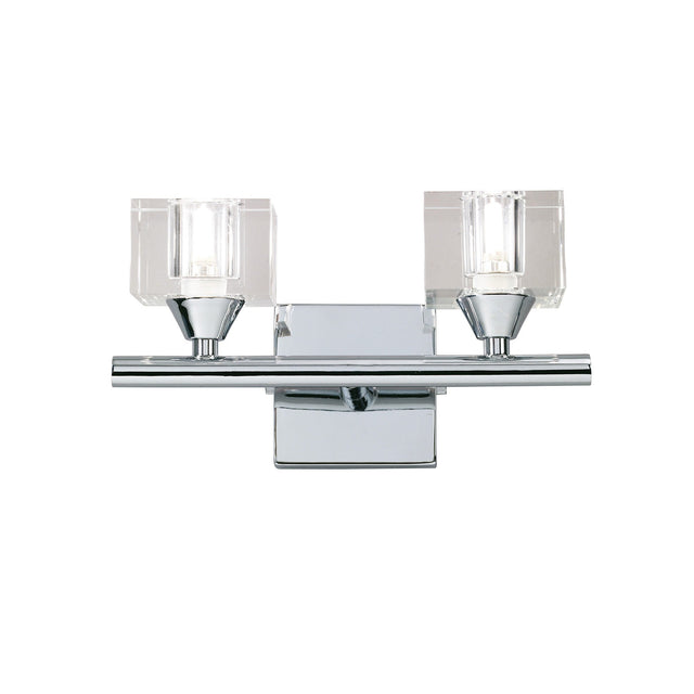 Cuadrax 2 Light Clear Glass Wall Light With Switch - Polished Chrome