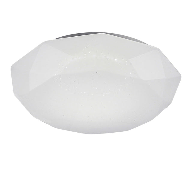 This version is ideal for interiors requiring a modern ceiling light that doubles as a decorative statement. The balance of texture, geometry and soft diffusion creates an elegant contrast that suits both minimal and more detailed décor styles. The diamond cut effect introduces a touch of reflective interest, allowing the ceiling to become an active visual element within the space. In its 5000K format, this particular piece delivers a polished balance of clarity, style and contemporary edge.