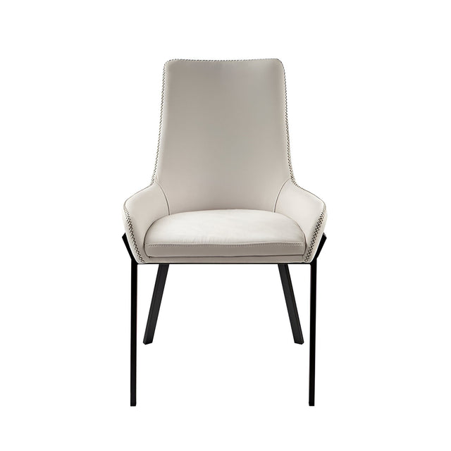 Modern accent chair Diane refines the classics with monochrome elegance. A strong matte-black metal frame supports a foam-cushioned shell clad in pure-white 100 % polyester, finished with artisanal grey backstitching that whispers bespoke craftsmanship. The slim, sculpted profile delivers elegant seating that feels as good as it looks, enhancing comfort while serving as a focal seating piece in dining rooms, reading nooks or boutique offices.