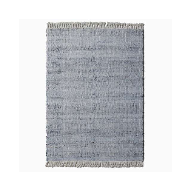 Our Ernad Denim and Wool Rug is handwoven in India using traditional techniques. Made in a subtle blue colour palette, this eco friendly rug is made of recycled denim from the fashion industry, saving tonnes of landfill waste each year. The wool is responsibly sourced in India.