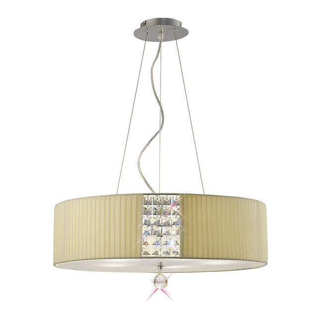 Evelyn 60cm 5 Light Crystal Suspension Light/Semi-Flush - Chrome With Cream Shade