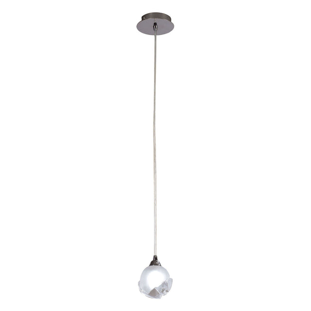 The Fragma 10cm 1 Light Pendant Light in Polished Chrome combines artistic elegance with refined engineering. Its intricate metal framework flows gracefully into a spherical glass shade, where frosted and clear finishes create a layered lighting effect. The polished chrome surface reflects its surroundings, adding luminosity and depth while maintaining a cool, contemporary edge. Designed with sculptural intent, the pendant’s form suggests movement and continuity, evoking modern artistry in lighting design. Suitable for luxury dining areas, boutique spaces, or statement clusters, it delivers aesthetic precision and ambient glow in perfect measure. Every contour and curve demonstrates expert craftsmanship, resulting in a timeless pendant that bridges decorative beauty and functional light. The Fragma pendant embodies balance, between shine and softness, structure and fluidity, art and utility.