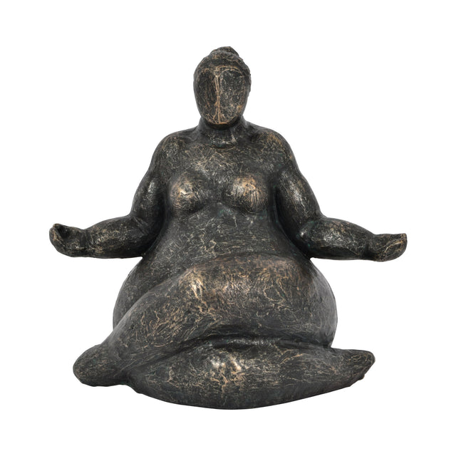 Our Freya sculpture is named after the goddess of Love, Beauty and Fertility. She sits with her arms out in a peaceful, meditative pose. This beautiful decorative sculpture celebrates the feminine form, and is made in resin, with our signature Antique bronze finish. Whilst curvy in shape, our Freya sculpture has a flat base, and will be right at home displayed on a shelf or mantelpiece.