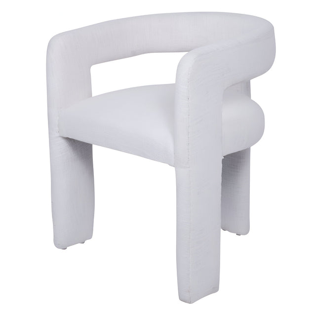 Fully Upholstered Ivory Slub Chair, a versatile and stylish addition to any interior. This chair boasts a striking three-leg design that oozes style, and its solid wooden frame is expertly covered in a heavy slub fabric where imperfections are celebrated as key features. Versatile as a dining chair or an occasional chair . Seat Height 43cm Seat Internal 50 x 48 (WXD)