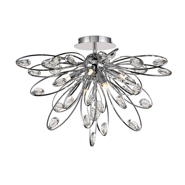 Harlow 6 Light Crystal Semi-Flush Ceiling Light - Polished Chrome