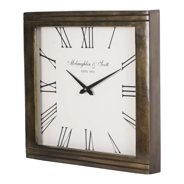 The Hornchurch Wall Clock in Burnished Brass is a refined timepiece that combines classic design with modern elegance. Crafted from durable aluminium, it features a square frame with a brushed brass finish, offering a warm, vintage appeal. The clock face is adorned with Roman numerals and grooved detailing, enhancing its traditional aesthetic. Measuring 38 cm in width and height, and 5 cm in depth, this wall clock is an ideal addition to various interior styles, from contemporary to traditional. It operates on a single AA1 battery (not included). Whether placed in a living room, hallway, or office, this clock adds a touch of sophistication to any room. Please note that this clock produces a gentle ticking sound, adding to its nostalgic charm.