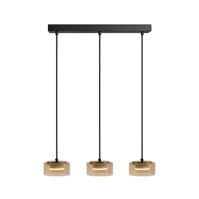 The Olaia 5 Light Bar Pendant balances understated form with decorative warmth. Featuring three rounded glass shades in a rich amber tint, this fixture brings a soft diffused glow to kitchen islands, dining bars, or open-plan interiors. The matte black and satin gold metal structure delivers a bold visual contrast, combining clean geometry with moody depth.