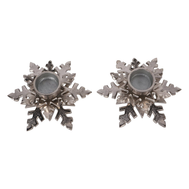 Laura Ashley Set of 2 Festive Snowflake Tealight Holders - Silver