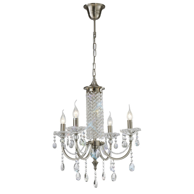 Leana 55cm 4 Light Crystal Chandelier - Satin Nickel