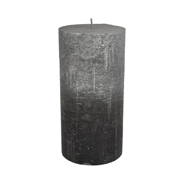 This Rustic Pillar Candle is made using traditional methods in Europe. This high quality candle has a silver finish at the top, with an ombre blend down into a rustic black base. Super stylish for any modern interior, and suited well with our timeless Mayfair theme. They measure 10cm diameter and are 20cm in height. The specially designed wick ensures a clean burning flame of high clarity and an impressive burn time. 100% paraffin. This candle has a burn time of approximately 190 hours.