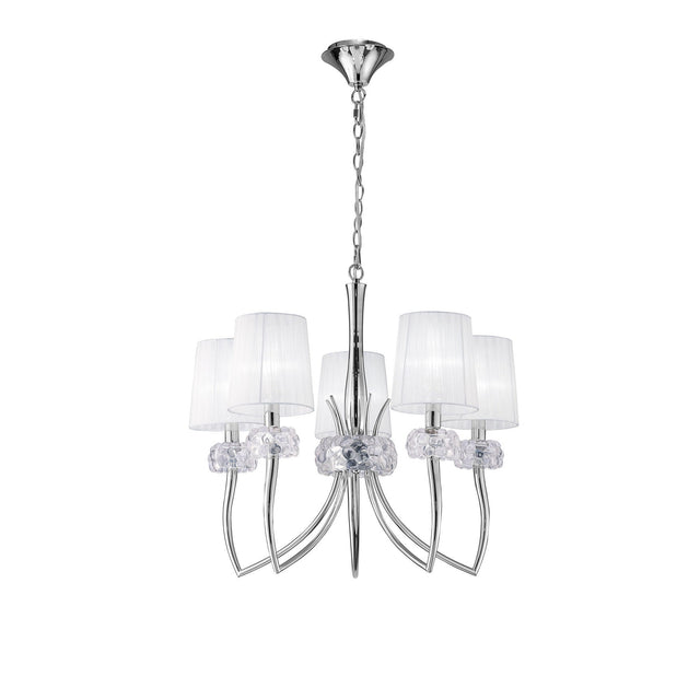 Loewe 5 Light Chandelier - Polished Chrome With White Shades