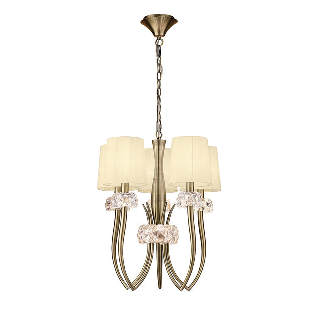 Loewe 50cm Slim 5 Light Chandelier - Antique Brass With Cream Shades